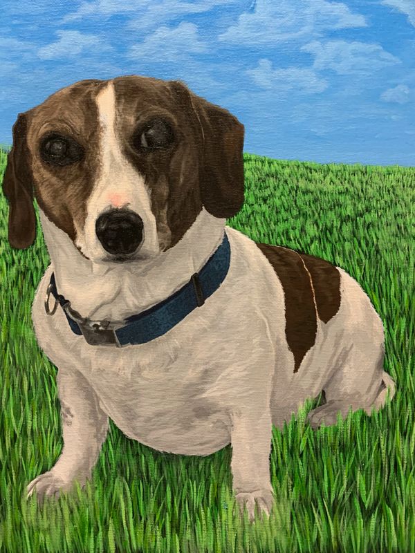 It was the loss of my dog, Dudley, that inspired me to paint him and other household pets as a way to bring comfort to those who have experienced a loss of a dog or other animal. My specialty is custom animal portraits but I also enjoy doing custom building paintings and landscapes.