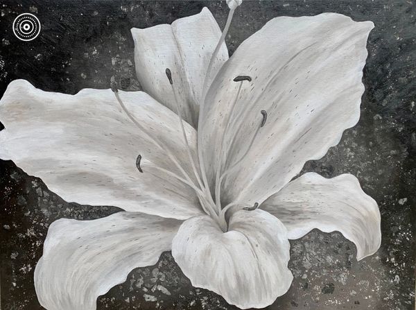 Although my family has impacted much of the work I produce, the main source of my inspiration comes from the Lord. He inspires every piece of art and every mark that I make. This black and white painting of a Lily was made using ashes from post it notes of the Asbury University student body. It is a symbol of surrender to a God who brings beauty from ashes and who is the only one I paint for.